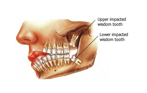 top and bottom. If a wisdom tooth doesn't have room to grow (impacted wisdom tooth), resulting in pain, infection or other dental problems,